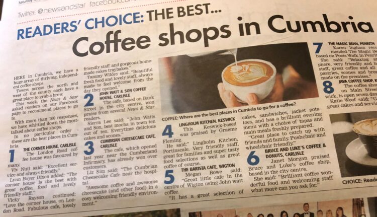 We are proud to announce that The Barista was voted as one of the Top 5 Coffee Shops in Cumbria via a Reader’s Feature in the News & Star